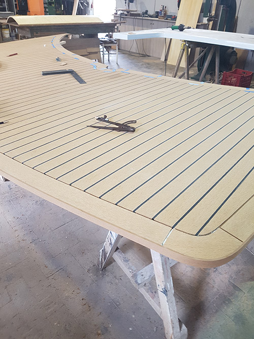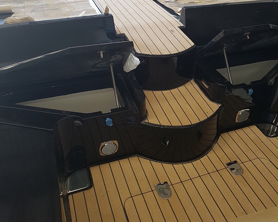 Una coperta in teak sintetico trasmette l’effetto visivo e la sensazione naturale al tatto del teak naturale. Inoltre, è personalizzabile fino a più di 30 combinazioni diverse di colori e linee di calafataggio, soddisfacendo così ogni diversa esigenza di stile.