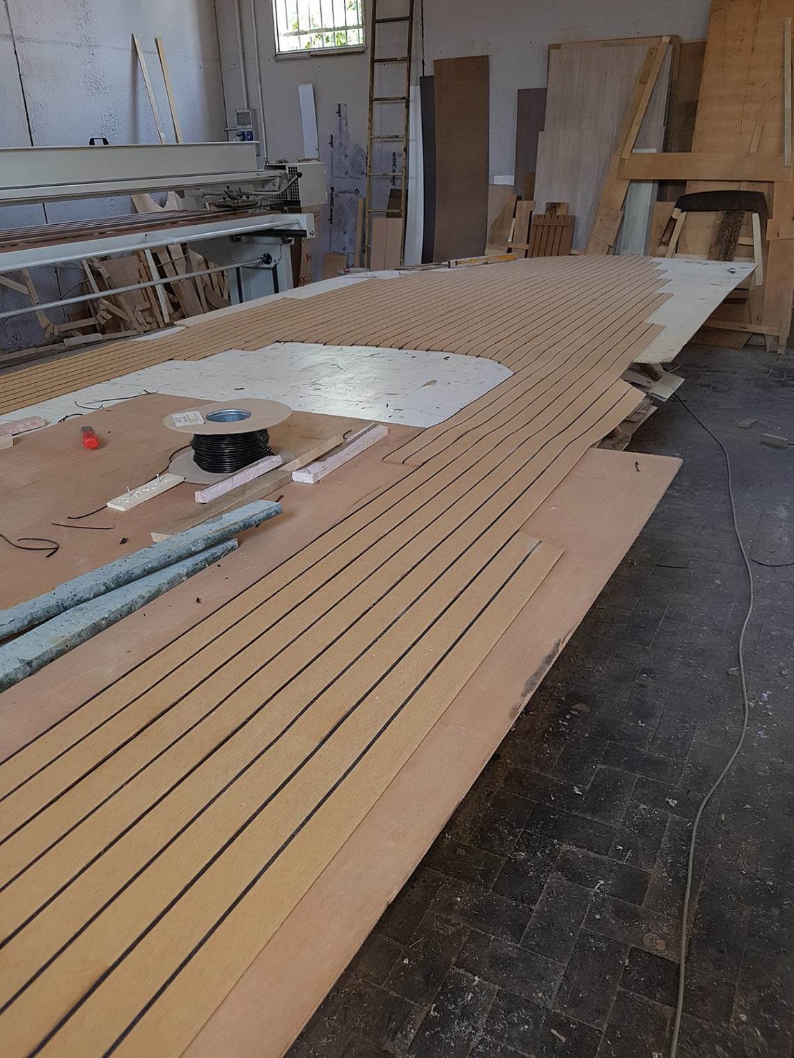 Il teak sintetico è un materiale innovativo e alternativo al teak naturale per la realizzazione di coperte, ponti, pavimentazioni e grandi aree di calpestio di yacht, superyacht e mega yacht.